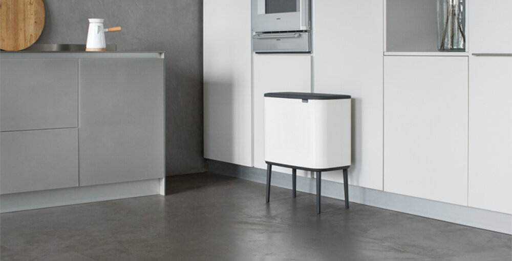 Kosz na śmieci uchylny BRABANTIA 313547 Bo Touch do segregacji, dwa wyjmowane wiadra, regulowane nóżki 34L Biały