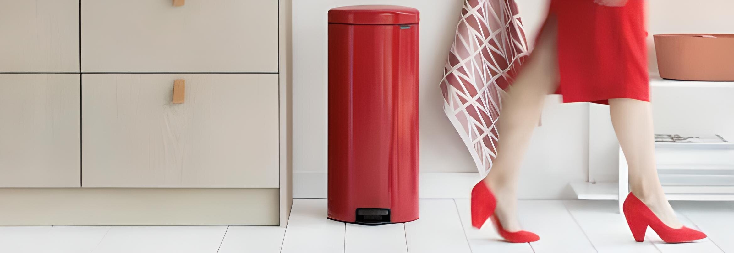 - Kosz na śmieci z pedałem BRABANTIA 111808 NewIcon ciche zamykanie, malowany proszkowo 30L Czerwony