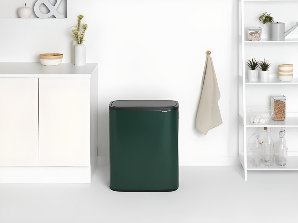Kosz na śmieci uchylny BRABANTIA Bo Touch 304224 do segregacji, System Soft Touch, dwa wyjmowane wiadra 60L Zielony
