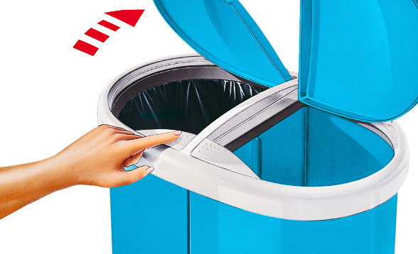 W koszu znajduje się specjalna ząbkowana ramka, służąca trzymaniu worków. Dzięki temu nie będą zsuwać się do wewnątrz kosza.