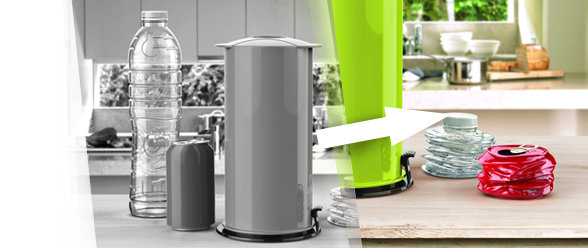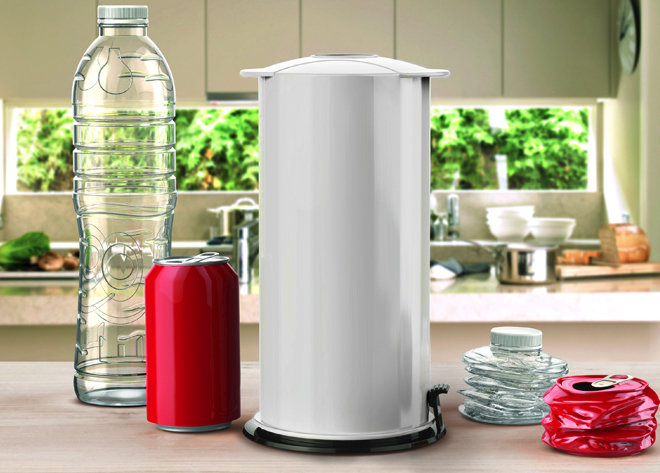 Butelki i puszki po zgnieceniu przybierają kształt krążka, który zajmuje znacznie mniej miejsca, nawet niż butelka zgnieciona nogą.