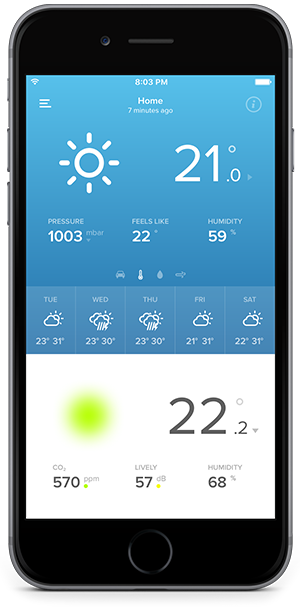 Moduł wewnętrzny stacji pogodowej mierzy komfort wewnątrz pomieszczenia, dostarczając ważnych informacji oraz ostrzegając, kiedy potrzebujesz wywietrzyć dom, aby obniżyć poziom zanieczyszczenia. Zdrowszy dom80% czasu spędzamy w pomieszczeniach zamkniętych, a powietrze w pomieszczeniach jest często bardziej zanieczyszczone niż powietrze z zewnątrz. Bardzo dobrze 425ppm Średni 1180ppm Ostrzeżenie 2250ppm Przeanalizuj poprzednie odczyty, obserwuj teraźniejszość i prognozuj przyszłość.Aplikacja umożliwia przeglądanie danych w formie wykresu w celu śledzenia w czasie rzeczywistym środowiska. Obserwuj cykle i przewidywania zmian wokół ciebie.