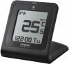 Termometr zewnętrzny i wewnętrzny, z zegarem, budzikiem, kalendarzem, alarmem mrozu, ekranem dotykowym oraz z funkcją zapisywania dziennych minimalnych i maksymalnych wartości temperatury wewnętrznej. Model ten posiada bezprzewodowy czujnik zewnętrzny.