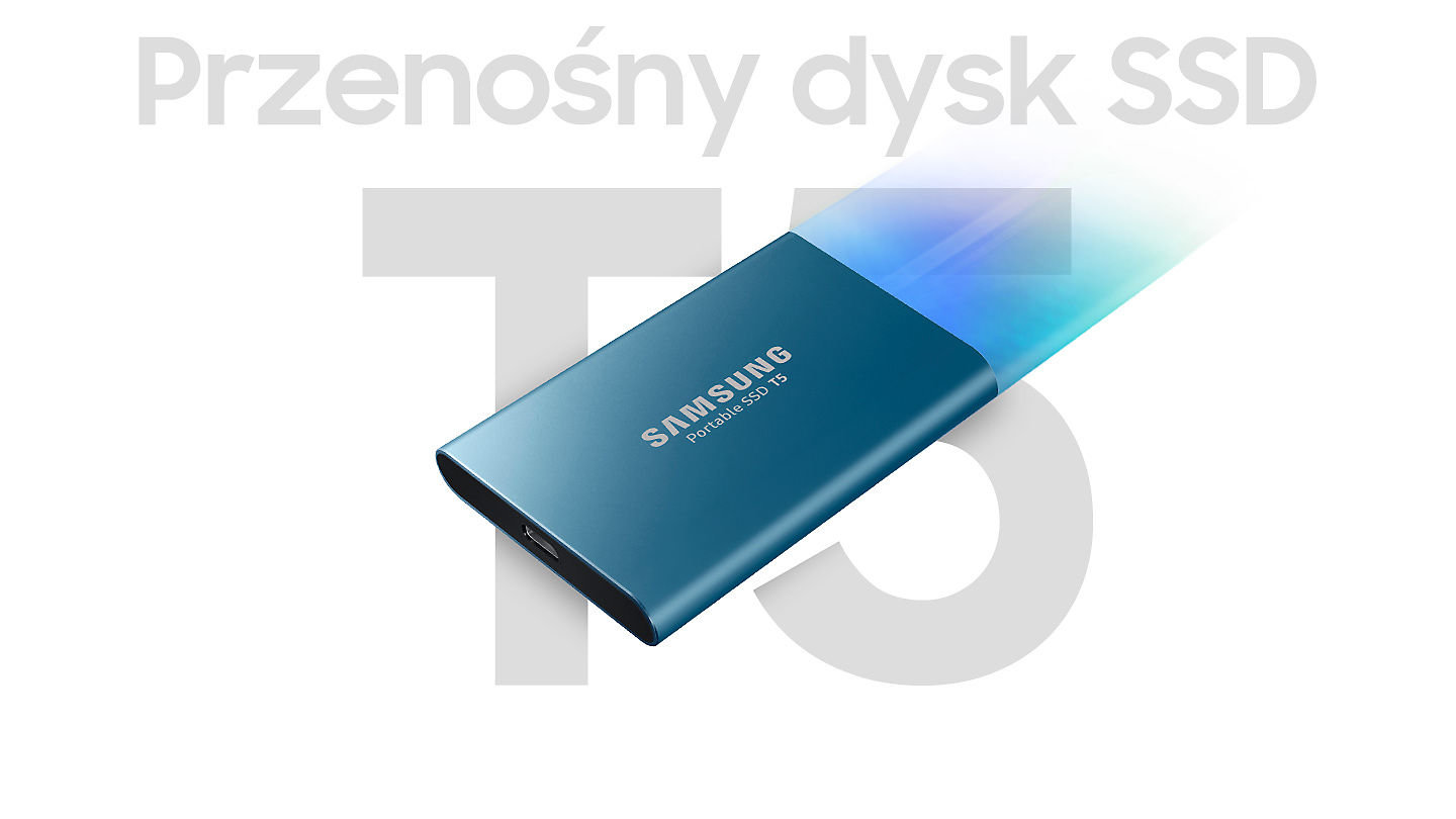 Przenośny dysk SSD T5 firmy Samsung to jeszcze szybszy transfer danych i zupełnie nowe podejście do pamięci zewnętrznej. Kompaktowy, wytrzymały i chroniony hasłem T5 jest niezwykle lekki. A do tego bezpiecznie przechowuje dane.