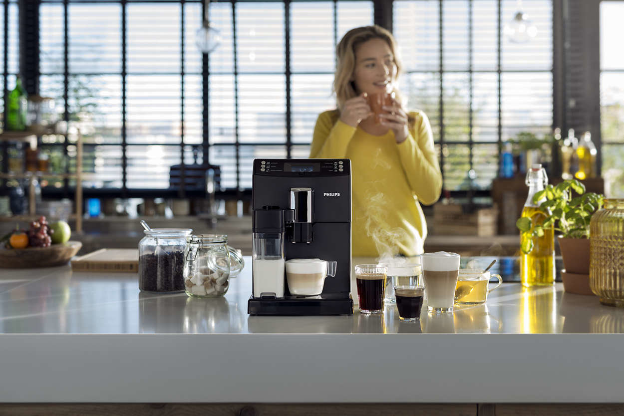 Delektuj się różnymi napojami na każdą okazję. Bez względu na to, czy masz ochotę na espresso, kawę czy napój mleczny, w pełni automatyczny ekspres błyskawicznie i bez żadnych problemów przygotuje dla Ciebie idealny napój.