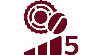 Regulacja ilości kawy, 5 ustawień mocy aromatu, 5 ustawień młynka