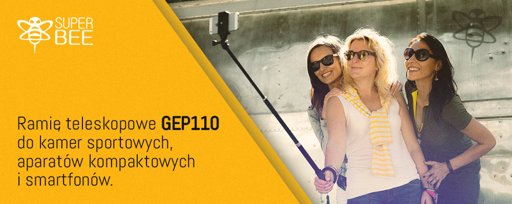 Ramię teleskopowe Superbee GEP110 do kamer sportowych, smartfonów i aparatów - 110 cm Superbee GEP110 to ramię teleskopowe pozwalające na oddalenie zamocowanej kamery czy aparatu na odległość do 110 cm, dzięki czemu możliwe jest uzyskanie szerszej perspektywy. W efekcie w kadrze znajdzie się zdecydowanie więcej elementów. Kijek posiada płynną regulację między 30 cm a 110 cm. Blokady długości ramienia dokonuje się poprzez przekręcenie poszczególnych sekcji. Kijek teleskopowy Superbee został wykonany z połączenia tworzyw sztucznych oraz stopu aluminium, efektem czego jest niska waga. Wysokiej jakości materiały zastosowane w procesie produkcji gwarantują długie i bezproblemowe użytkowanie. |