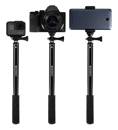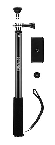 Idealny do kamer, smartfonów i małych aparatów Domyślnie wysięgnik teleskopowy GEP110 zakończony jest mocowaniem systemu GoPro do kamer sportowych, co zapewnia kompatybilność z większością modeli dostępnych w sprzedaży. Specjalnie zaprojektowana, przedłużona śruba montażowa nie koliduje z wodoodporną obudową. Dodatkowo znajdujący się w zestawie mobile holder daje możliwość korzystania ze smartfonów (o szerokości nie większej niż 85 mm) a adapter z gwintem statywowym ¼ cala, aparatów fotograficznych i kamer. Jego konstrukcja pozwala na ustawienie zamontowanego aparatu pod wybranym kątem. |