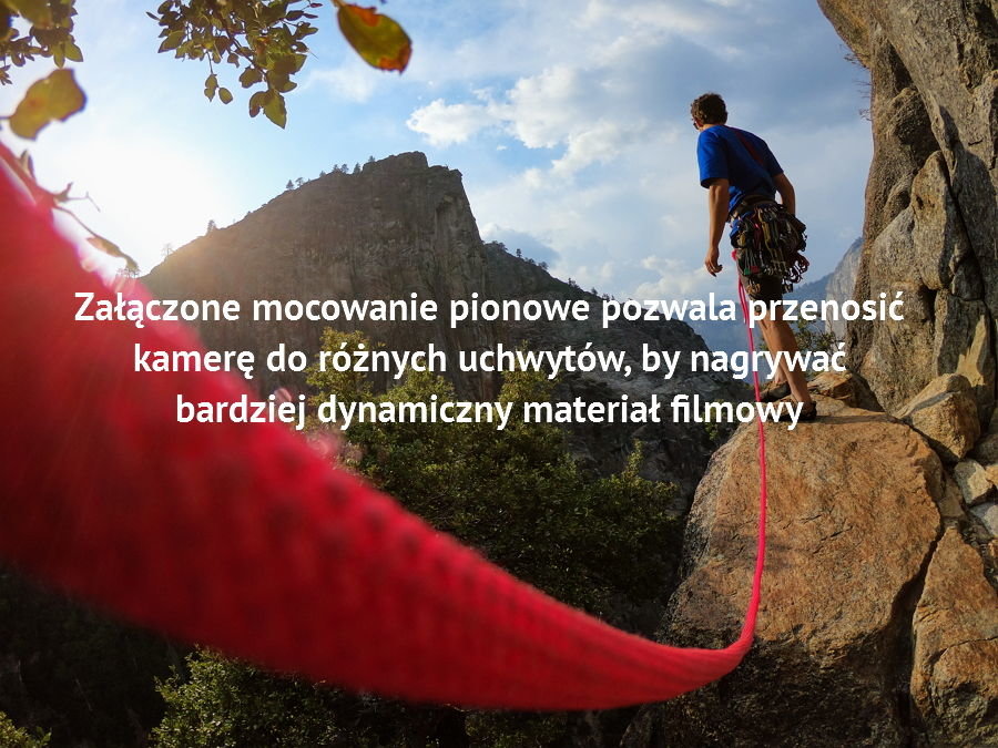 Szybkie i łatwe dołączanie kamery GoPro do pałąków zabezpieczających, poręczy lub innych rur o średnicy od 3,5 do 6,35 cm. Obrotowa podstawa 360° z przyciskiem i 16 blokowanymi położeniami pozwala na filmowanie ujęć pod dowolnym kątem. Na bieżąco przenoś kamerę do różnych uchwytów dzięki dołączonemu mocowaniu pionowemu.
