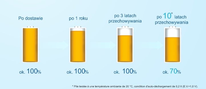 zachowuje 70% pojemności nawet po 10 latach przechowywania.