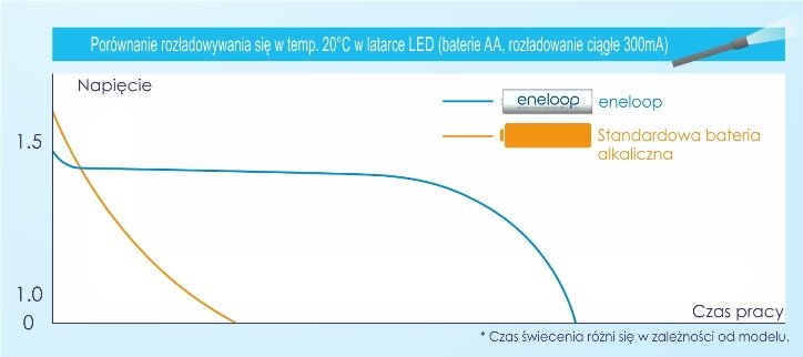 eneloop ma wysokie napięcie początkowe i utrzymuje je na wystarczająco