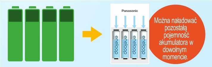 następnie ponownie naładować. eneloop to nowy akumulator, który może