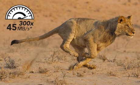 Karta o klasie szybkości klasy 10, wykorzystująca technologię High-Performance x300 UHS-I dostarcza szybkość transferu do 300x (45MB/s*), co pozwala cieszyć się ulubionymi treściami multimedialnymi wszędzie, gdzie jesteś.