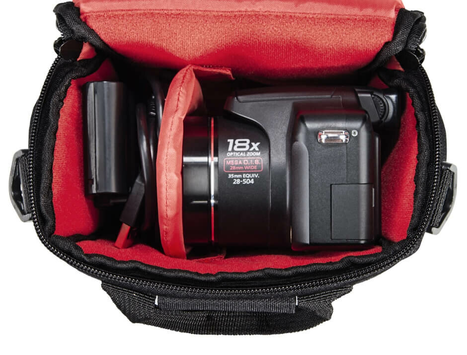 Kompaktowa torba do aparatu fotograficznego lub kamery średniej wielkości z miejscem na drobne akcesoria, które zawsze warto mieć pod ręką.