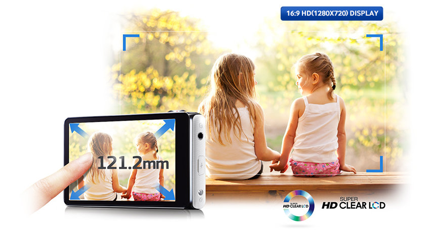 Ekran dotykowy HD Super Clear o przekątnej 121,2 mm (4,8”) Nie musisz czekać, aż wrócisz do domu, aby przeglądać i edytować swoje zdjęcia. Wyświetlacz dotykowy HD Super Clear o przekątnej 121,2 mm (4,8”) w aparacie GALAXY Camera 2 zapewnia doskonały obraz dzięki 308 pikselom na cal i pełnej gamie fantastycznych kolorów. Z kolei nowa technologia White Magic potrafi nawet dwukrotnie rozjaśnić obraz, bez obaw o wcześniejsze rozładowanie akumulatora. A może chcesz oglądać filmy HD w standardzie 16:9? Wykorzystaj nowy Samsung GALAXY Camera.