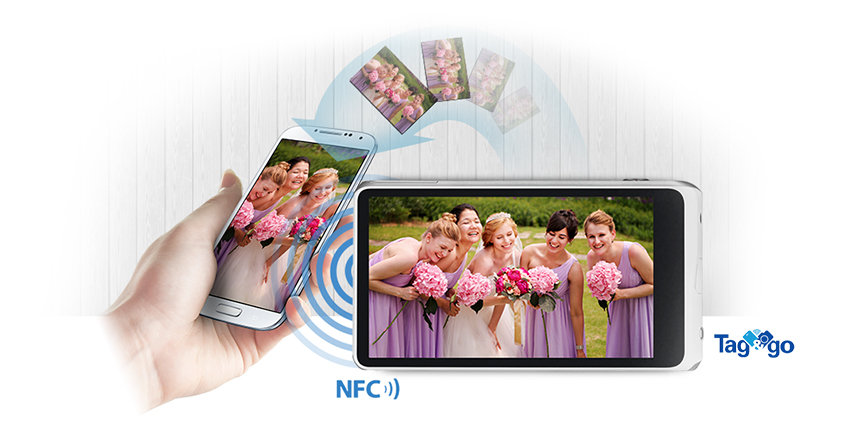 Funkcje Tag&Go, wykorzystujące łączność Wi-Fi i technologię NFC, takie jak Photo Beam, AutoShare, Remote Viewfinder i MobileLink umożliwiają udostępnianie zdjęć na kompatybilne smartfony znajdujące się tuż obok ciebie lub na drugim końcu świata. Za pomocą funkcji Photo Beam prześlesz od razu zdjęcie, które oglądasz, na smartfon. AutoShare zapisuje zdjęcia podczas ich robienia na smartfon, a za pomocą aplikacji Remote Viewfinder możesz sterować aparatem przy użyciu smartfona. Możesz bez wysiłku publikować zdjęcia w serwisach społecznościowych oraz przechowywać je w chmurze.