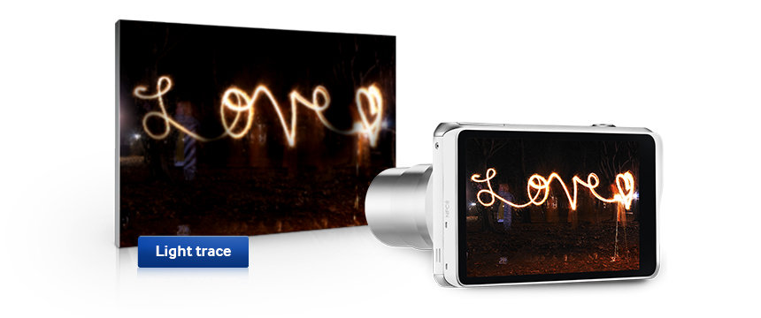 Tryb Smart Nie musisz już zazdrościć profesjonalnym fotografom dźwigającym ogromne aparaty. Zacznij samodzielnie robić doskonałe zdjęcia! Możesz na przykład uchwycić doskonałe smugi świateł samochodów nocą na ruchliwym skrzyżowaniu. Lub sfotografować szybko poruszający się obiekt dzięki opcji Zatrzymanie akcji. Wystarczy uruchomić tryb Smart i już możesz korzystać z całej gamy specjalnych trybów fotografowania. Wybierz jedną z dostępnych opcji, aby zasmakować w świecie doskonałości..
