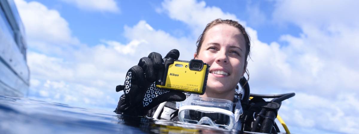 Zanurkuj z aparatem COOLPIX W300 i rejestruj zdjęcia i filmy na głębokości do 30 m bez specjalnej obudowy¹. Na lądzie ten pyłoszczelny aparat kompaktowy działa niezawodnie nawet w niskiej temperaturze do -10°C². Jego wstrząsoodporny korpus wytrzymuje upadek z wysokości do 2,4 m³. Teraz możesz uzyskać certyfikat Advanced Open Water, przemierzać kamieniste szlaki i szusować po stokach bez obaw o swój aparat. |