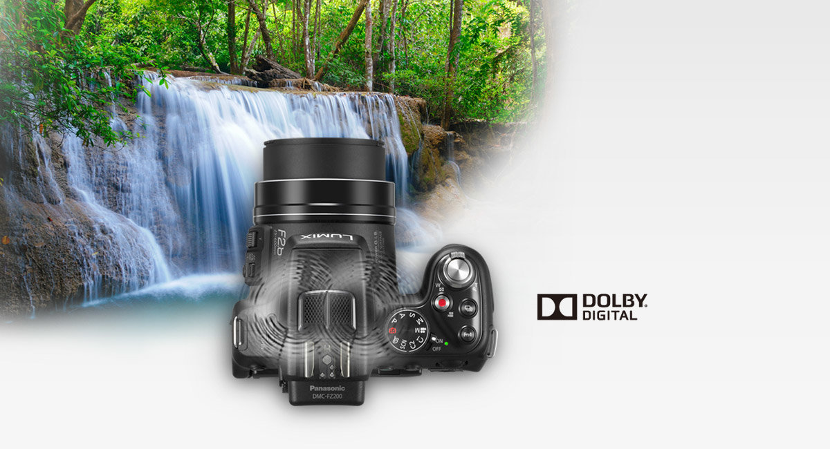 | Mikrofon stereo Mikrofon stereo typu zoom pozwala na dodanie do wideo wysokiej jakości dźwięku stereo Dolby® Digital Stereo Creator, zapewniając realistyczne wrażenia. Tłumienie szumów mechanicznej obsługi obiektywu potęguje wrażenie krystalicznej czystości dźwięku. |