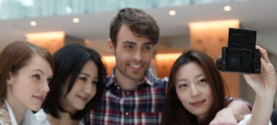 Lepsze zdjęcia dzięki wbudowanemu wizjerowi elektronicznemu Wbudowany wizjer elektroniczny umożliwia dokładniejsze komponowanie ujęć, zwłaszcza w intensywnym oświetleniu. Dla większej wygody aparat jest również wyposażony w czujnik zbliżenia oka, błyskawicznie przełączający wyświetlanie między wizjerem a ekranem LCD. |
