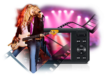 Nagrywanie filmów HD (720p, 30 kl./s, MPEG) Stylowy, a jednocześnie wyróżniający się parametrami aparat nagrywa filmy MPEG w rozdzielczości HD 720p z szybkością 30 klatek na sekundę – szybciej niż przeciętny cyfrowy aparat kompaktowy. Od sali koncertowej po urodzinowe przyjęcie – teraz nakręcisz filmy w jakości HD w dowolnym miejscu.