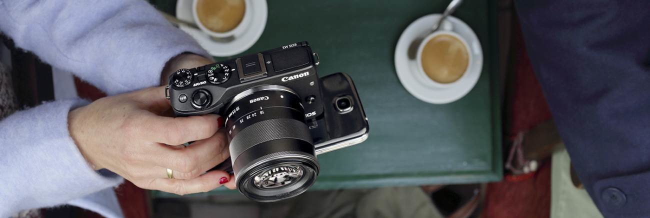 Przenośna wydajność lustrzanki cyfrowej Dzięki przyjemnej w noszeniu kompaktowej, lekkiej i stylowej obudowie model EOS M3 pozwala mieć przy sobie wszystkie możliwości lustrzanki cyfrowej, wraz z wymiennymi obiektywami. |