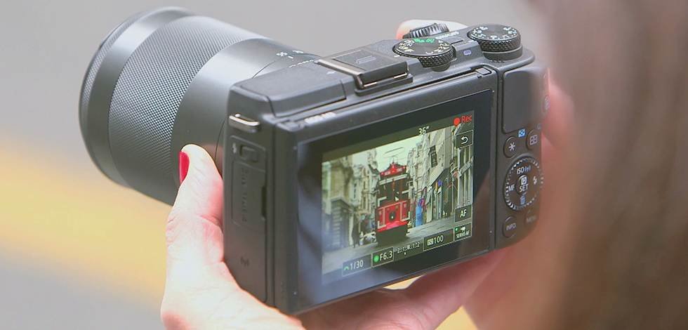 | Filmowanie w sposób zbliżony do fotografowania Nagrywanie filmów w najwyższej jakości Full HD (1080p) z szybkością 30 kl./s w formacie MP4 oraz szybki, płynny autofokus dzięki zaawansowanemu systemowi Hybrid CMOS AF III. Dotykowy AF w filmach pozwala tworzyć płynne, kinowe efekty powolnej zmiany ostrości, a wzmocnienie krawędzi przy ręcznej regulacji ostrości eksponuje ostre obszary ujęcia. |