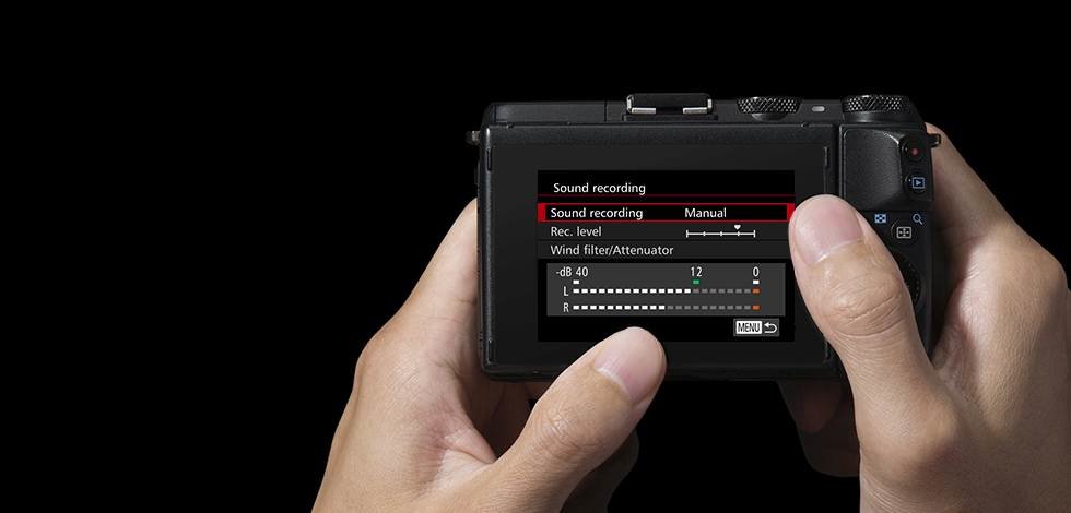 Wspaniałe ścieżki dźwiękowe Nagrywaj wysokiej jakości ścieżki dźwiękowe za pomocą gniazda mikrofonu zewnętrznego 3,5 mm, który obsługuje całą gamę mikrofonów zewnętrznych. Dźwięk z mikrofonu może być regulowany ręcznie w aparacie. |