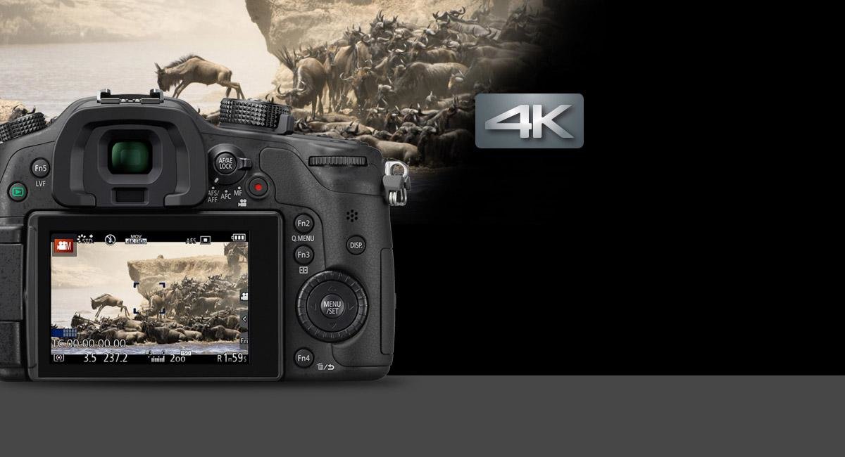 Nowy aparat DMC-GH4 jest w stanie zapewnić profesjonalną jakość ujęć dzięki funkcjom nagrywania filmów w rozdzielczości 4K (Cinema 4K 4096 x 2160 / 24 kl./s oraz QFHD 4K: 3840 x 2160 / do 30 kl./s) w formacie MOV/MP4. Dostępna jest także funkcja nagrywania z dużą szybkością transmisji: 200 Mb/s (ALL-Intra) lub 100 Mb/s (IPB) bez limitu długości nagrania.*1 *2 Dodano także różne funkcje przydatne dla osób zajmujących się profesjonalnie nagrywaniem filmów. *1 Długość filmu nie może przekraczać 29 min 59 s. Maksymalna długość zależy od formatu nagrywania i od regionu geograficznego. *2 W przypadku trybu nagrywania o dużej szybkości, przekraczającej 100 Mb/s, należy używać kart pamięci SDXC/SDHC zgodnych z klasą prędkości UHS 3 (U3).