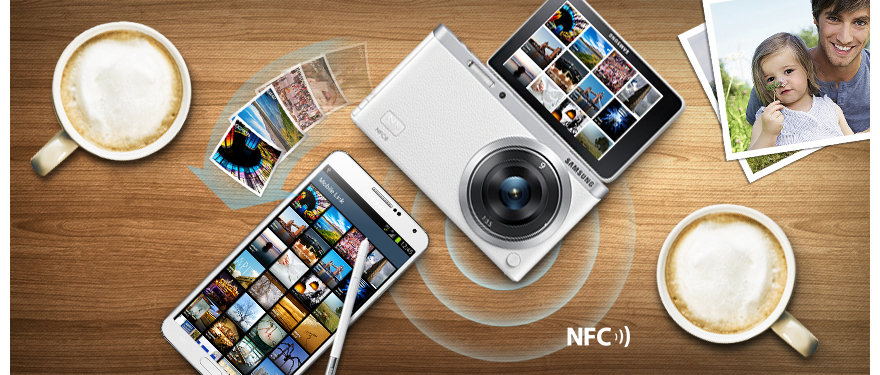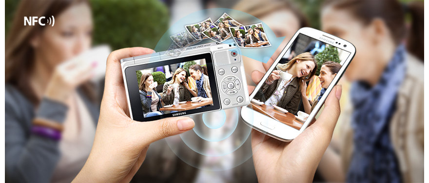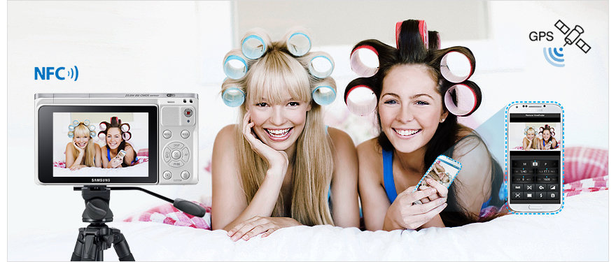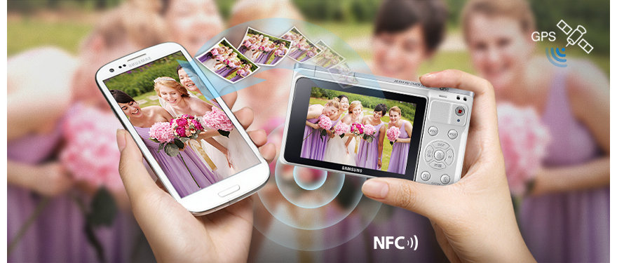 Zapisuj każde wykonane zdjęcie. Dzięki technologii NFC funkcja Samsung AutoShare umożliwia automatyczne przesyłanie zdjęć na smartfon lub tablet w sieci Wi-Fi. Możliwe jest także dodawanie do zdjęć znaczników GPS.