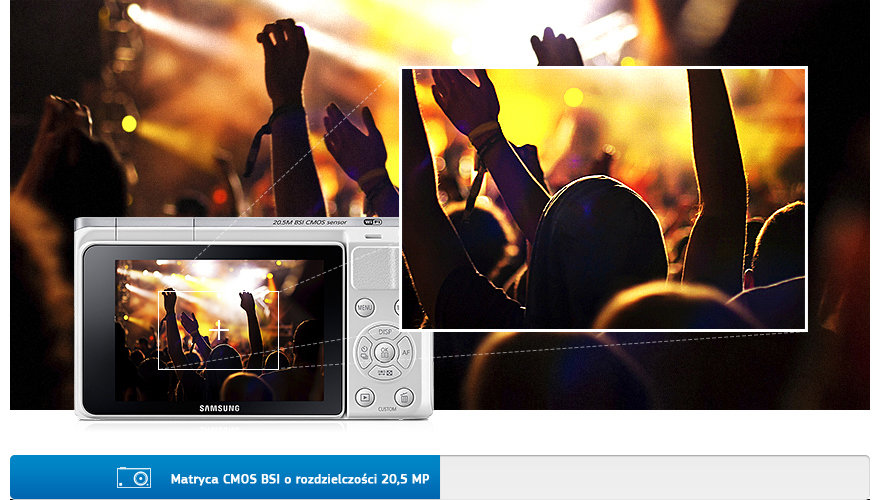 Duża calowa matryca CMOS BSI o rozdzielczości 20,5 MP w aparacie NX mini zapewnia zadziwiająco wysoką rozdzielczość uchwyconych scen, które możesz przeżywać na nowo w najdrobniejszych szczegółach i w żywych, realistycznych kolorach.