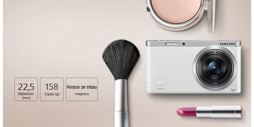 Wykonany ze stopu magnezu oraz tworzywa imitującego skórę korpus nadaje NX mini nowoczesny wygląd z jednoczesnym nawiązaniem do stylistyki aparatów analogowych. Efekt końcowy emanuje elegancją.