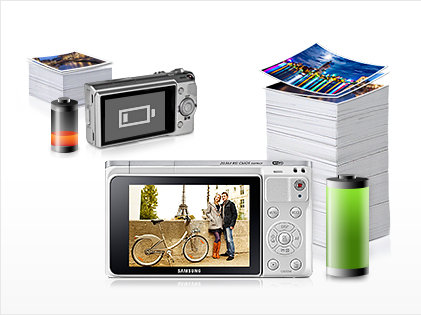 Po naładowaniu akumulator w aparacie NX mini pozwala na wykonanie do 650 doskonałej jakości zdjęć lub nagranie 190 minut materiału wideo (9 mm, standard CIPA)*. Typowe akumulatory są bez szans. Teraz już nie musisz martwić się o to, na jak długo wystarczy Ci zasilania.