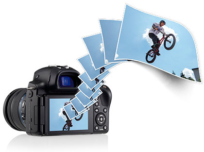 Sfotografowanie skoczka o tyczce w kluczowej fazie lotu wymaga reakcji w mniej niż sekundę. Dzięki trybowi seryjnemu możesz zrobić całą serię zdjęć z szybkością 9 klatek na sekundę i spośród nich wybrać te o najlepszym kadrze. Zaawansowany autofokus ciągle ustawia ostrość, rejestrując całą sekwencję ruchu. Porównaj zrobione zdjęcia ze sobą na wyświetlaczu, aby wybrać najbardziej imponujące ujęcie.