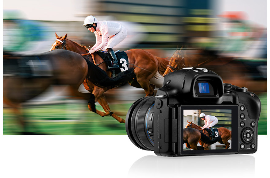 Z aparatem Samsung SMART CAMERA NX30 o szybkości migawki 1/8 000 s zatrzymasz każdą decydującą chwilę. Szybka migawka i błyskawiczny autofokus pozwalają perfekcyjnie uchwycić ruch z większą precyzją niż ta, z którą widzi go ludzkie oko – bez żadnego śladu zamazania.