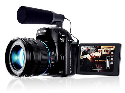 Filmuj żywe detale i naturalny, płynny ruch w technologii Full HD 1080 / 60p. Funkcja Smart Range+ automatycznie wzmacnia tonację kolorów kadru, przez co cienie stają się jaśniejsze, a jasne obszary – nieco ciemniejsze. Wyposażony w standardowe wejście mikrofonowe 3,5 mm aparat Samsung SMART NX30 może również nagrywać czysty, wyraźny dźwięk w stereo za pomocą dodatkowego mikrofonu, co idealnie współgra z obrazem o równie wysokiej jakości. Materiał gotowy? Wykorzystaj interfejs HDMI, aby wyświetlić swoje genialne dzieło na ekranie telewizora HDTV i w pełni cieszyć się szczegółowością obrazu.