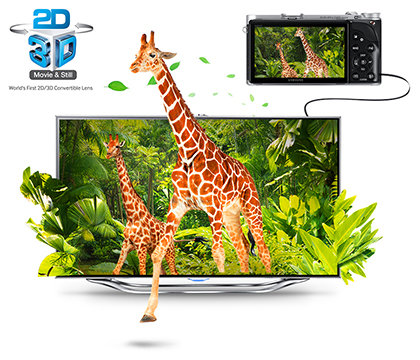 True 3D Creator sprawi, że twoje wakacyjne zdjęcia i filmy naprawdę ożyją! Wyposażony w pierwszy na świecie system z jednym obiektywem, który umożliwia robienie zdjęć 2D i 3D, aparat Samsung SMART NX300 jest również jedynym aparatem z systemem wymiennych obiektywów, umożliwiającym zarówno robienie zdjęć, jak i filmowanie w 3D, przy użyciu obiektywu Samsung 2D / 3D 45 mm. Teraz twoi znajomi będą mogli poczuć się, jakby byli razem z tobą, oglądając oszałamiająco realistyczne obrazy na ekranie kompatybilnego telewizora HD w trójwymiarze.