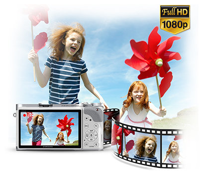 Filmowanie w Full HD (1080 / 60 P) Być może aparat Samsung SMART NX300 nie wygląda jak kamera, jednakże potrafi filmować w standardzie Full HD 1080 / 60 P. Bezkompromisowe parametry pracy oraz obiektyw 18 – 200 mm z dużym zoomem sprawiają, że z aparatem Samsung SMART NX300 stworzysz doskonałej jakości filmy godne profesjonalisty, które z powodzeniem można oglądać na ekranie telewizora HD. A gdy wszyscy będą gotowi na pokaz, dzięki łączu HDMI możesz zaprezentować im swoją wizję na dużym ekranie.