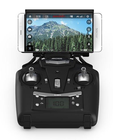 kontroler ARCHOS Drone wykorzystuje własny kontroler. Za jego pomocą możesz sterować dronem. Dodatkowo może posłużyć jako stojak na smartfon, aby obejrzeć nagranie na żywo. |