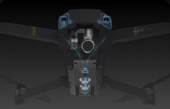 | Dwa zestawy czujników. Podwójna niezawodność. W dronach najczęstszym źródłem problemów jest nieprawidłowa praca czujników. Dlatego właśnie Mavic posiada dwa zestawy kluczowych czujników. Jeśli jeden zacznie szwankować, załącza się drugi i zajmuje jego miejsce. |