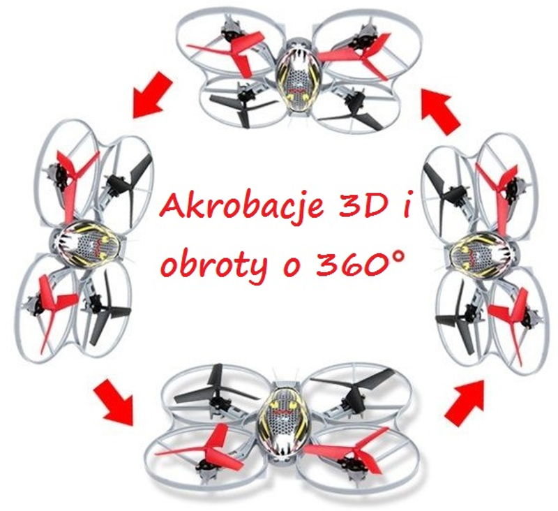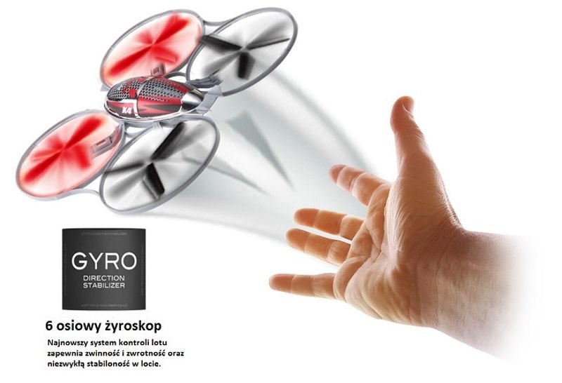 Quadrocopter porusza się we wszystkich 3 kierunkach (przód-tył, lewo-prawo, dół-góra), zupełnie jak owad. Wbudowany żyroskop zapewnia bardzo stabilny lot. Niezwykła stabilność i łatwość sterowania umożliwiają bezproblemową obsługę z którą poradzi sobie nawet dziecko nie mające nigdy wcześniej styczności ze zdalnie sterowanymi modelami i w ten sposób nabierze doświadczenia. Dodatkowo posiada 2 tryby lotu (zmienne przyciskiem na pilocie ) - wolny (dla amatora) i szybki (dla zaawansowanych).