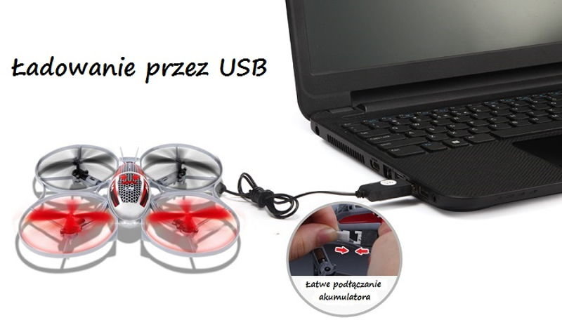 Model wyposażono w mocny akumulator Li-Po o pojemności 200mAh, dzięki czemu czas lotu dochodzi do 6-8 minut. Gdy quadrocopter będzie wymagał naładowania akumulatora, można to uczynić za pomocą urządzenia wyposażonego w wyjście USB, jak i bezpośrednio z pilota zdalnego sterowania.