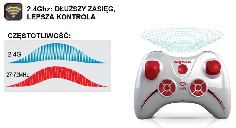 Syma X4 poza prostym lataniem w każdym kierunku, potrafi wykonywać prawdziwe powietrzne akrobacje, m.in. przewroty, spirale i "kręcenie beczek". Wystarczy tylko wcisnąć jeden z przypisanych przycisków funkcyjnych na nadajniku oraz wybrać kierunek, w jakim ma być wykonany dany trik. Dzięki bezprzewodowej technologii i szerokiemu zasięgu kontrolera o częstotliwości 2,4GHz reakcja modelu na sygnał jest natychmiastowa. Zabezpieczenie antyzakłóceniowe umożliwia sterowanie wieloma samolotami w tym samym czasie.