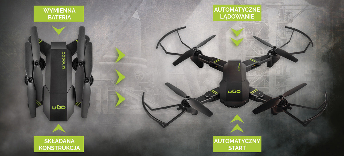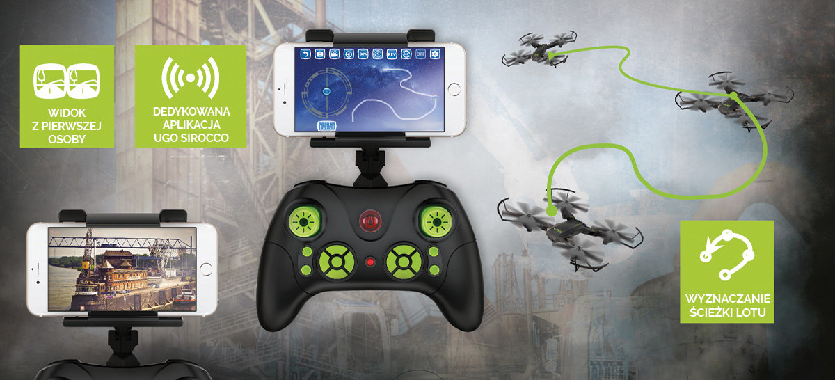 Funkcja WiFi umożliwia oglądanie lotu za pomocą połączonych zdalnie gogli VR oraz połączenie drona z telefonem i zapisywanie filmu bezpośrednio w jego pamięci dzięki dedykowanej aplikacji UGO Sirocco.