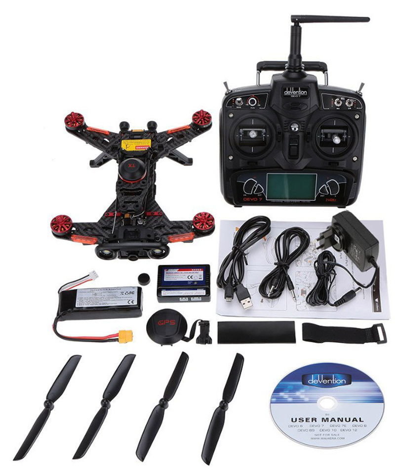 Dzięki zastosowaniu nadajnika Devo 7 działającego w technologii 2.4GHz zasięg dochodzi nawet do 1000m. Poza szybkim lataniem Walkera Runner 250 Advanced potrafi wykonywać też efektowne triki 3D.