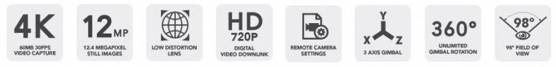 360 Nasza zawieszona, odporna na wibracje, 3-osiowa kamera CGO3+ pozwala na nagrywanie filmów w jakości 4K Ultra High Definition oraz na robienie 12 megapikselowych zdjęć w zasięgu 360. Nasza kamera jest wyposażona w wysokiej jakości szkło o polu widzenia 98 oraz szerokokątną soczewkę z możliwością dostosowywania paramentów podczas lotu. |