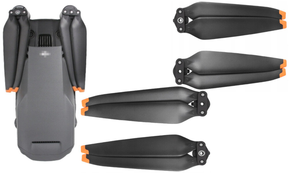 Dla każdego użytkownika drona DJI MAVIC 3 polecamy zestaw śmigieł. Do ich projektu użyto tworzywa sztucznego. Konstrukcja jest bardzo lekka i nie obciąża drona podczas lotu. Na uwagę zasługują pomarańczowe wykończenia.