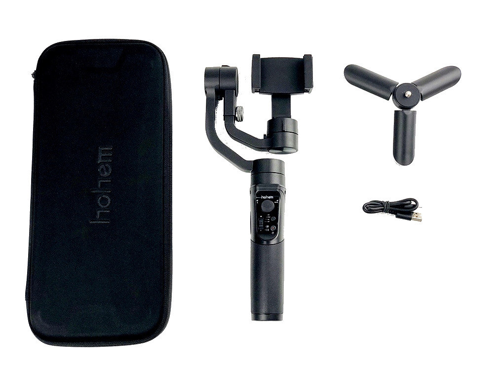 Zestaw składa się z: Gimbala Kabla MicroUSB Futerału ochronnego Mini statywu pozwalającego na ustawienie gimbala |