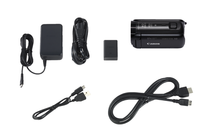 Zawartość pudełka Canon LEGRIA HF R86 Kompaktowy zasilacz sieciowy Canon CA-110E Akumulator BP-727 Kabel USB Kabel Mini-HDMI |
