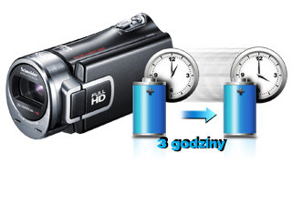 Długi czas pracy baterii (3 godziny) Teraz możesz cieszyć się niskim poborem mocy i bardziej wydajnym akumulatorem dzięki zaawansowanej technologii Samsung. Dzięki tej innowacyjnej technologii bateria może pracować aż do trzech godzin w trybie filmowania w jakości HD. To oznacza, że możesz nagrać cały mecz, w którym gra Twoje dziecko, nie tracąc żadnej akcji na zmianę akumulatora. Ponadto nie musisz już zabierać ze sobą dodatkowego akumulatora ani ładowarki na krótkie wycieczki. (Uwaga: funkcja ta jest dostępna wyłącznie w trybie stałego nagrywania (Continuous Recording), przy użyciu akumulatora dostarczonego w zestawie.)